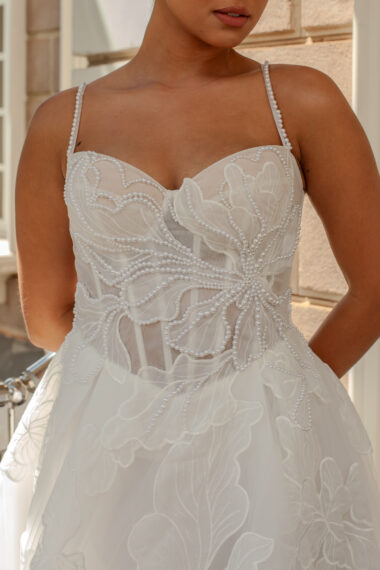 Perfeito. Essa modelagem do corpete de noiva garante firmeza e definição natural, além de proporcionar sustentação e conforto.