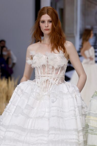 Cintura basca nos desfiles da última Barcelona Bridal Week, em 2025.