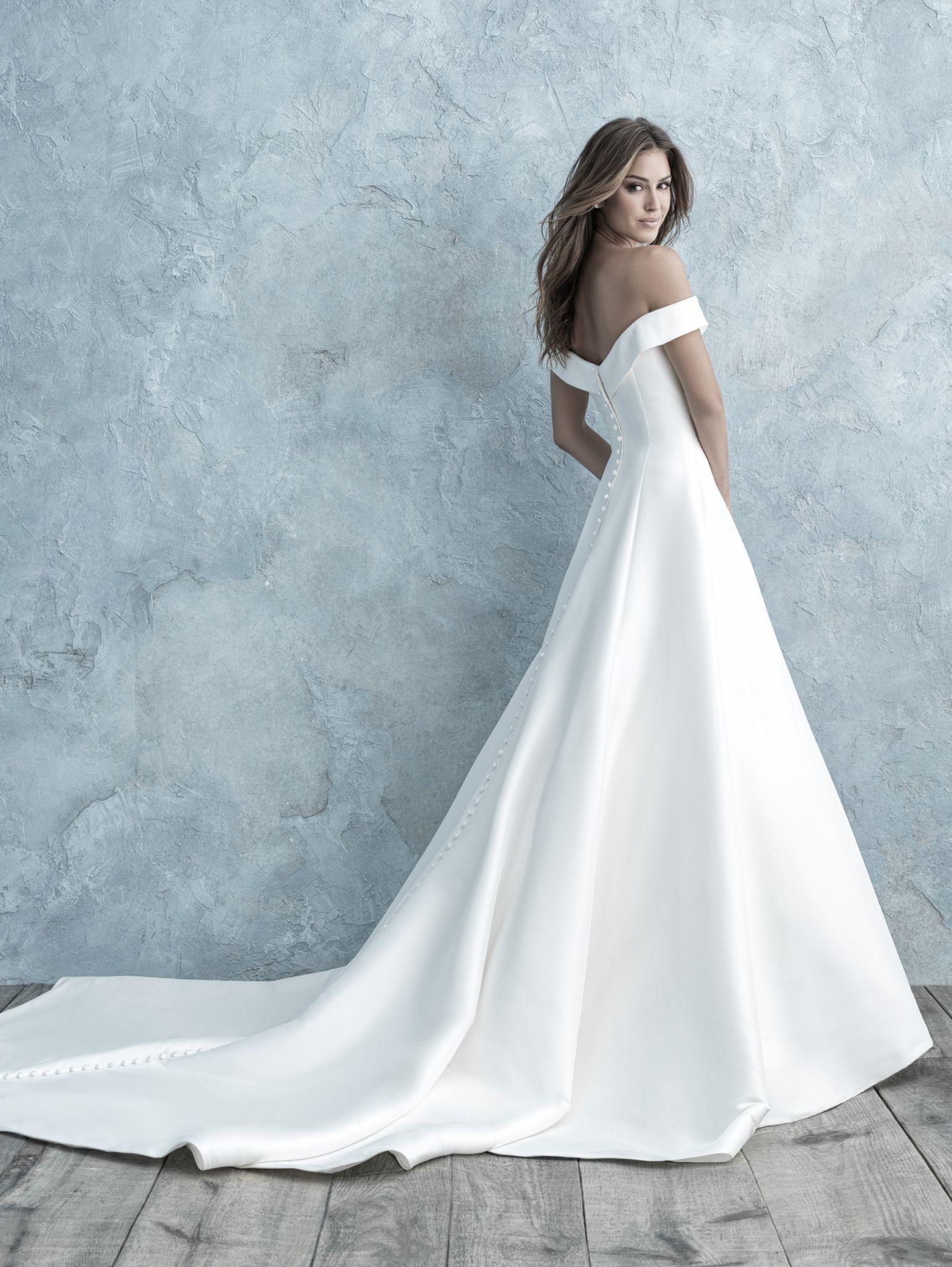 Vestido de noiva confeccionado em cetim mikado, com corte princesa. As mangas ombro a ombro e a longa cauda trazem um toque clássico ao modelo. Especialmente para noivas que buscam um visual minimalista.